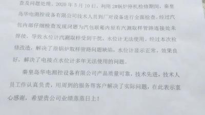 【企業要聞】華電測控再次收到表揚信―技術上精益求精,服務上全心全意” 2020-06-112020年5月15日,華電測控收到來自新疆某化工有限公司的表揚信,表揚我公司解決了該廠鍋爐汽包電接點水位計多年無法使用的問題。信中對我公司的產品質量、全新全意為客戶服務的理念以及技術人員認真負責的工More