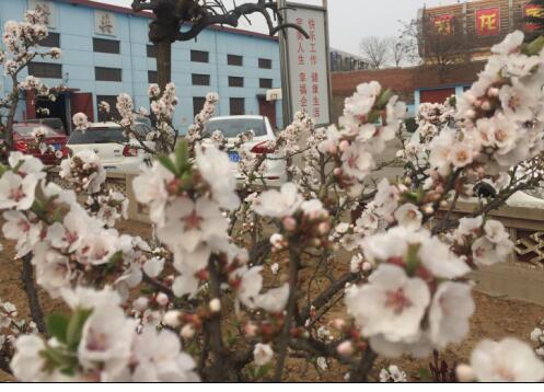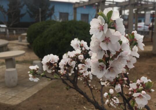 粉紅色的杏花,潔白的櫻桃花,淡雅的香氣在風中彌漫開來,引人入勝;
