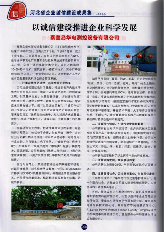 秦皇島華電測(cè)控設(shè)備有限公司自1999年成立以來(lái),始終秉持“以坦誠(chéng)交朋友,以創(chuàng)新謀發(fā)展,以質(zhì)量求生存,以服務(wù)贏信譽(yù),以改進(jìn)拓市場(chǎng)”的經(jīng)營(yíng)方針從事經(jīng)營(yíng)活動(dòng),“誠(chéng)信、坦誠(chéng)”始終被放在首位!