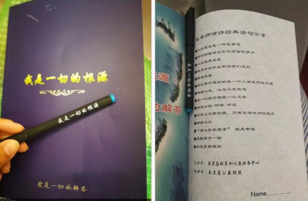 學習中,每個人手握著筆,告訴你“我是一切的根源”;手里拿著的筆記本,告訴你“我是一切的根源”;耳朵聽到的是“我是一切的根源”;眼睛看到的是“我是一切的根源”。讓整個人從觸摸到看到聽,身心合一地去感悟“我是一切的根源”。