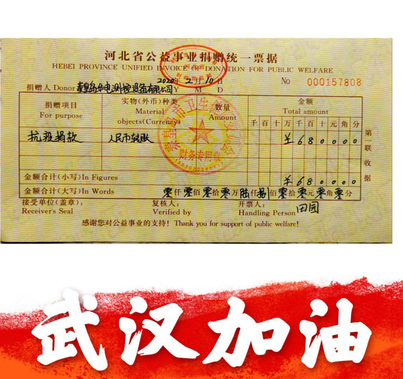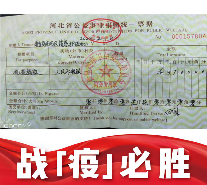 2月3日,秦皇島華控集團黨支部、工會委員會發起了“防控疫情,助力武漢”的愛心互助倡議,發動員工為抗擊冠狀病毒疫情捐款。集團公司員工、員工家屬、各界愛心社會人士紛紛參與,齊心協力打贏冠狀病毒疫情防控的攻堅戰!