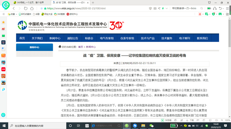 【企業要聞】戰“疫”面前,人人有責 -記中國機電一體化技術應用協會工程技術發展中心刊登我司報道有感