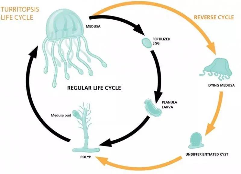 有觀點認為,“和普通水母在有性生殖后的死亡現象不同,燈塔水母性成熟最主要的特征便是個體還能夠重新回到水螅型。 并且這個過程并沒有次數限制,所以燈塔水母也被人們稱為“長生不老的水母”。當然,永生也并不能代表它們不會死,因為燈塔水母一般都只有5mm大小,所以它們只能獵食比自己小的浮游生物,對于那些比它稍微大點的生物來說。”