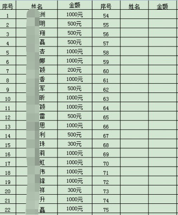 得到消息后第一時間自發捐款的員工名單