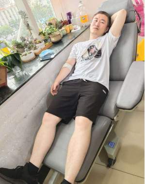 中午時分,抵達天津。集團人資部經理賀敏、科技公司總工程師崔明思優先上陣,獻出了4個治療量的紅細胞(800毫升血液)。