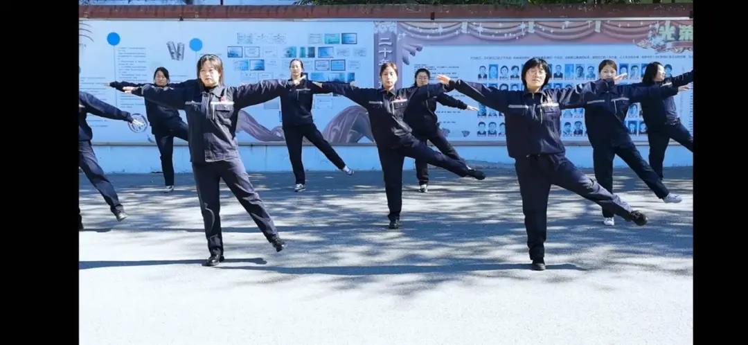 原來(lái),是我們的美女員工們正在操練。看,身著筆挺工裝的她們還在為職工廣播體操展演做最后的準(zhǔn)備。