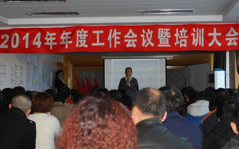 會議首先播放了華電宣傳片,回顧了公司的發展歷程,全體員工高唱《華電之歌》??偨浝韯⒓ㄏ壬髁祟}為《弘揚傳統文化,心懷感恩,以教練和職業化促執行力,向現代化企業邁進!》的工作報告。從公司取得的榮譽、國際貿易、新頒布的水位標準、協會組織、宣傳報道、情感護理等十個方面總結了2014年度工作取得的成果。隨后,劉總分別就國際貿易、銷售目標、弘揚傳統文化、加大固定資產投入、加強與政府的合作、加大宣傳力度、生產和交通安全、人力資源、新產品研發等十一個方面對2015年工作進行了重點布署,穩中求進,為大家指明了2015年的工作方向。