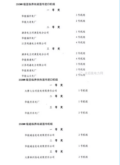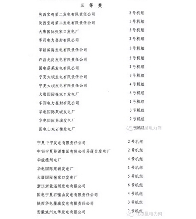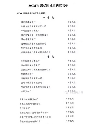 【重磅】2014年全國火電300MW級機組競賽對標獲獎名單