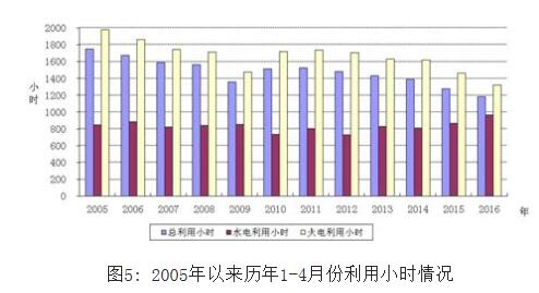 1-4月份,全國發電設備累計平均利用小時1180小時,同比降低97小時。