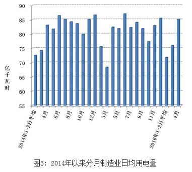 1-4月份,全國制造業用電量9225億千瓦時,同比下降0.9%,增速比上年同期低0.7個百分點。4月份,全國制造業用電量2557億千瓦時,同比增長0.8%;制造業日均用電量85.2億千瓦時/天,分別比上年同期和上月增加0.7億千瓦時/天和9.2億千瓦時/天。