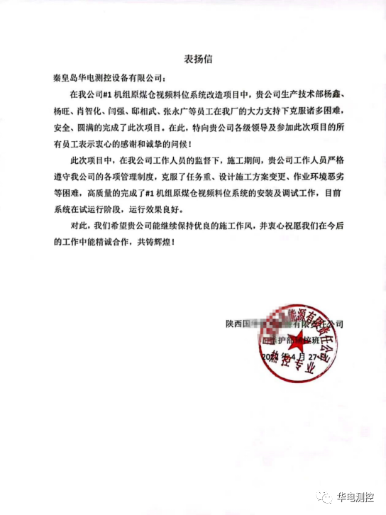 項(xiàng)目改造效果得到廠領(lǐng)導(dǎo)及工作人員認(rèn)可,現(xiàn)場工程技術(shù)人員更是得到電廠上下的一致好評。項(xiàng)目結(jié)束后電廠立刻發(fā)來《表揚(yáng)信》,信中電廠對生技部楊鑫、楊旺、肖智化、閆強(qiáng)、邸相武、張勇廣等員工的專業(yè)技術(shù)和工作態(tài)度給予肯定,并向我公司及工作人員標(biāo)識感謝,最后“祝愿我們在今后的工作中能精誠合作,共鑄輝煌!”公司一直致力于解決火力發(fā)電廠煤倉“堵煤”、“棚煤”、“漏眼”、“板結(jié)”、煤倉狀態(tài)實(shí)時(shí)監(jiān)測、煤倉安全管理等問題。自主研發(fā)、生產(chǎn)的HDSC煤倉綜合管理系統(tǒng)系列產(chǎn)品在國際上處于領(lǐng)先水平,占據(jù)國內(nèi)主要市場,并遠(yuǎn)銷海外,用戶超過800家,受到廣泛贊譽(yù)。公司生產(chǎn)的煤倉自動疏松裝置先后榮獲河北省中小企業(yè)質(zhì)量信得過產(chǎn)品、名牌產(chǎn)品稱號,煤倉綜合控制系統(tǒng)被認(rèn)定為河北省軟件產(chǎn)品。