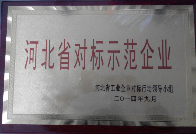 2014年9月,公司被河北省工業信息化廳工業企業對標行動領導小組認定為第二批河北省對標(技術創新類)示范企業,并于近日頒發了榮譽證書和牌匾。