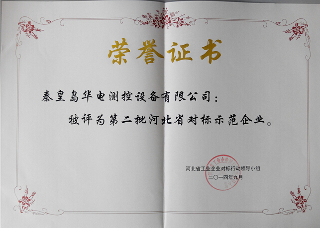 公司根據《關于實施工業轉型升級攻堅行動的意見》(冀發〔2013〕26號)和《河北省創建對標示范企業管理辦法》(冀對標〔2011〕1號),組織申報第二批河北省對標示范企業(冀對標辦〔2014〕3號)。通過市工信局篩選推薦、省工信廳審核認定(實地考察)、公開公示,公司獲此殊榮。