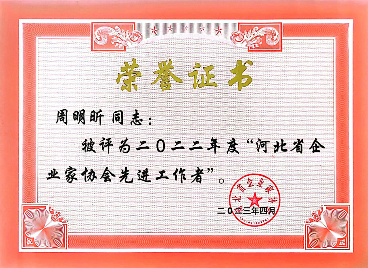 2023年4月,華電測控集團副總經理周明昕同志被河北省企業家協會評為2022年度“河北省企業家協會先進工作者”,這是繼榮獲河北省五一勞動獎章、河北省科技型中小企業創新英才后的又一省級榮譽。