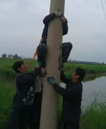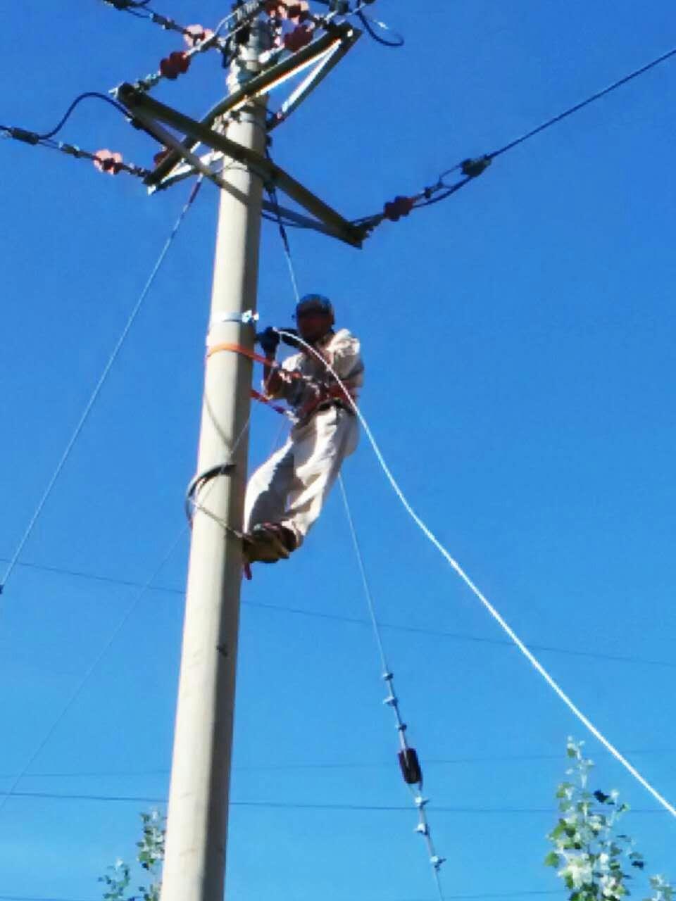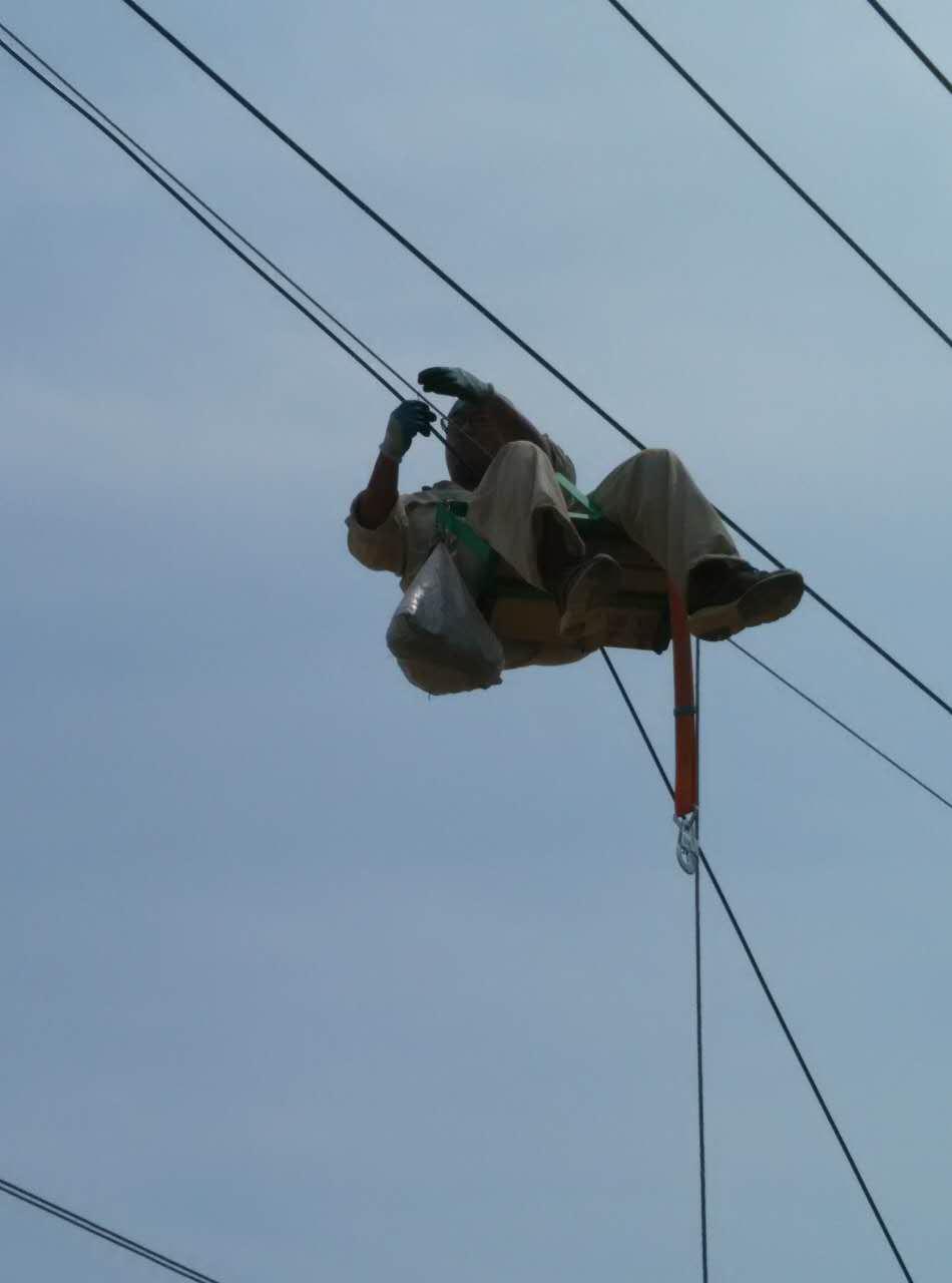 在這次工程中,最為辛苦的就是“倒桿子”了,寧愿多掛幾個(gè)夾子也不愿倒桿子,因?yàn)槊康挂淮味紩?huì)耗費(fèi)大量的體力,讓人汗流浹背、氣喘吁吁,施工人員相當(dāng)于穿著一件40斤左右的鐵褲衩 在一人粗細(xì)的桿頂左右移動(dòng)工作。最讓人煩惱的是當(dāng)小車上的人員處于兩根電線桿之間的位子時(shí)鋼纜滑滑小車滑輪外,需要耗費(fèi)極大的體力才能將它重新弄好,由于處于那時(shí)我們用力會(huì)無(wú)處生根,只能用撬棍一點(diǎn)一點(diǎn)撬,一弄就得一個(gè)小時(shí)左右,上不去下不來(lái),那過(guò)程,真不是一般的“酸爽”!
