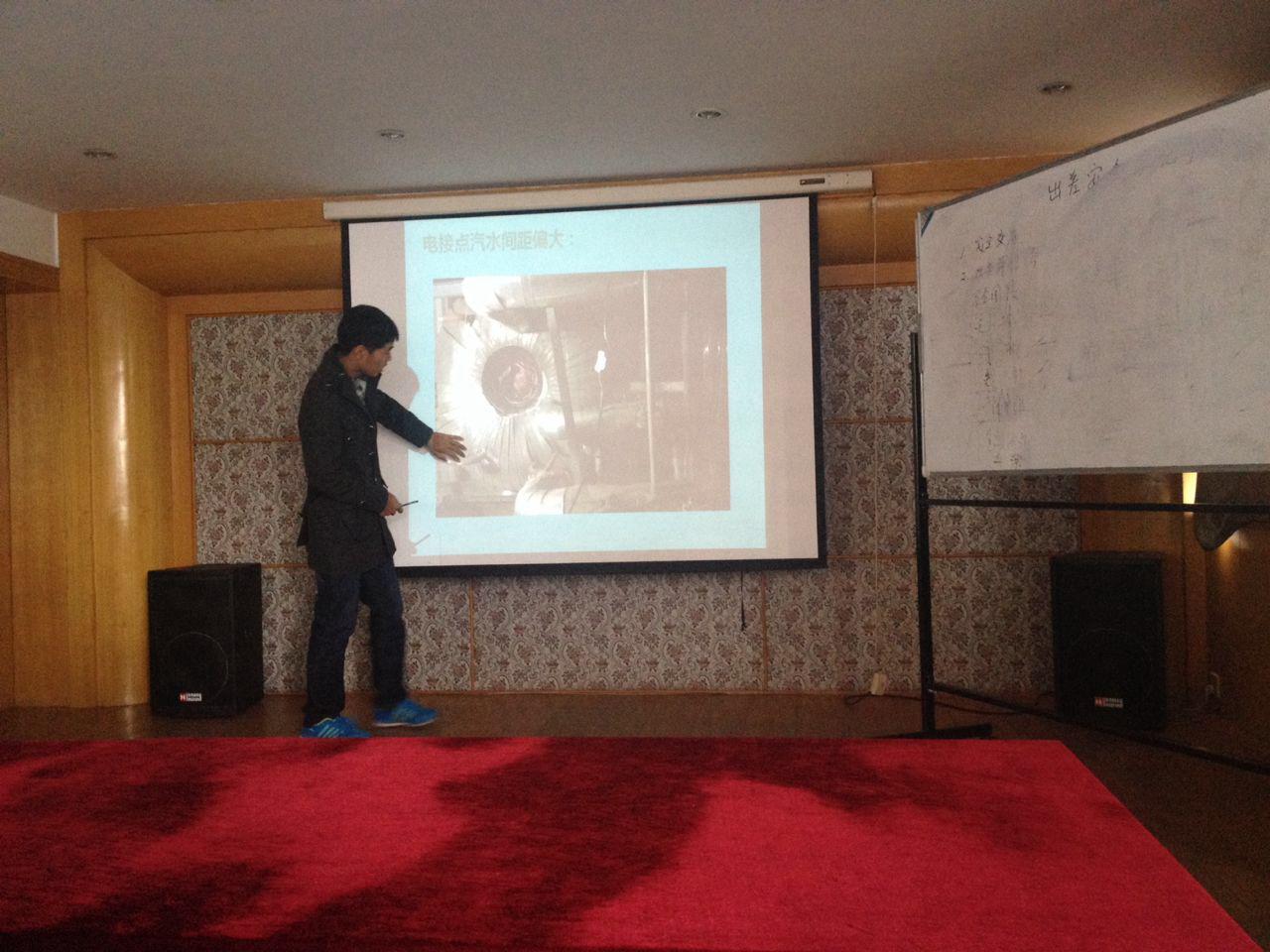 助理工程師于孔菲結合他在新疆農六師電廠出差的經驗,向大家講解了我公司高精度取樣電極傳感器和低偏差云母水位計的安裝和調試細節(jié)。工程部其他工程師在聆聽講課的同時,不斷向于孔菲進行技術提問,重新幫助他溫習了安裝和調試中的細節(jié)。