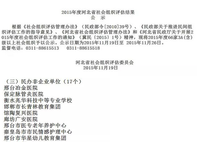 【企業要聞】秦皇島市市民情感護理中心榮獲2015年度河北省社會組織評估3A級單位