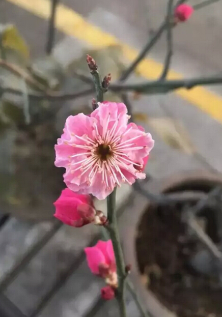 也許是工作的繁忙讓我經(jīng)常忽略周圍的環(huán)境變化,今天不經(jīng)意的一瞥,竟然發(fā)現(xiàn)了幾朵嬌艷的粉色?。?!那是保潔姐放在車間一盆不起眼的“干樹杈”,我走近一看,竟然冒出了好幾朵粉嫩的花,有的含苞待放、有的正在盛開,湊近一聞一股黯然凜冽的幽香撲鼻而來,沁人心脾。