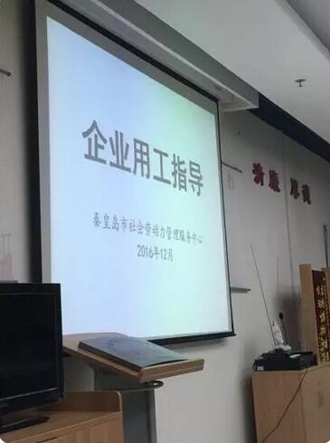 2016年12月15日下午,應秦皇島市人力資源和社會保障局勞動關系科的邀請,公司作為標桿企業在金色未來商廈參加了企業用工指導會議。