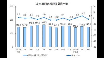 中國電力網(wǎng)訊 (記者齊濤)5月14日,國家統(tǒng)計(jì)局發(fā)布數(shù)據(jù)稱, 2016年4月份規(guī)模以上工業(yè)增加值增長6.0%,其中,發(fā)電量4444億千瓦時(shí),下降1.7%。 2016年4月份,規(guī)模以上工業(yè)增加值同比實(shí)際增長6.0%(以下增加值增速均為扣除價(jià)格因More
