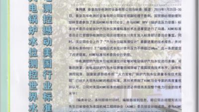 劉吉川總經(jīng)理第三次受邀參加美國ASME鍋爐標準研討會” 2015-08-12近日,秦皇島華電測控設備有限公司頻繁與美國ASME研討鍋爐汽包水位測量標準一事,受到業(yè)界廣泛關注。秦皇島企業(yè)家協(xié)會會刊2015年第1期,在第1頁協(xié)會動態(tài)欄目發(fā)表一文,題為“華電測控撼動美國行業(yè)標準,搏擊火電鍋爐水位測More