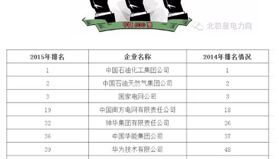 【榜單】2015中國企業(yè)500強:電力企業(yè)幾家上榜?” 2015-08-26北極星電力網(wǎng)獲悉:8月22日,“2015中國企業(yè)500強榜單”出爐,中國石化以2.89萬億元的總營收連續(xù)第十一年排名榜首,中國石油、國家電網(wǎng)分別以2.73萬億元、2.09萬億元的總營收分列二三位。 值得關注的是,互聯(lián)網(wǎng)公司中,京More